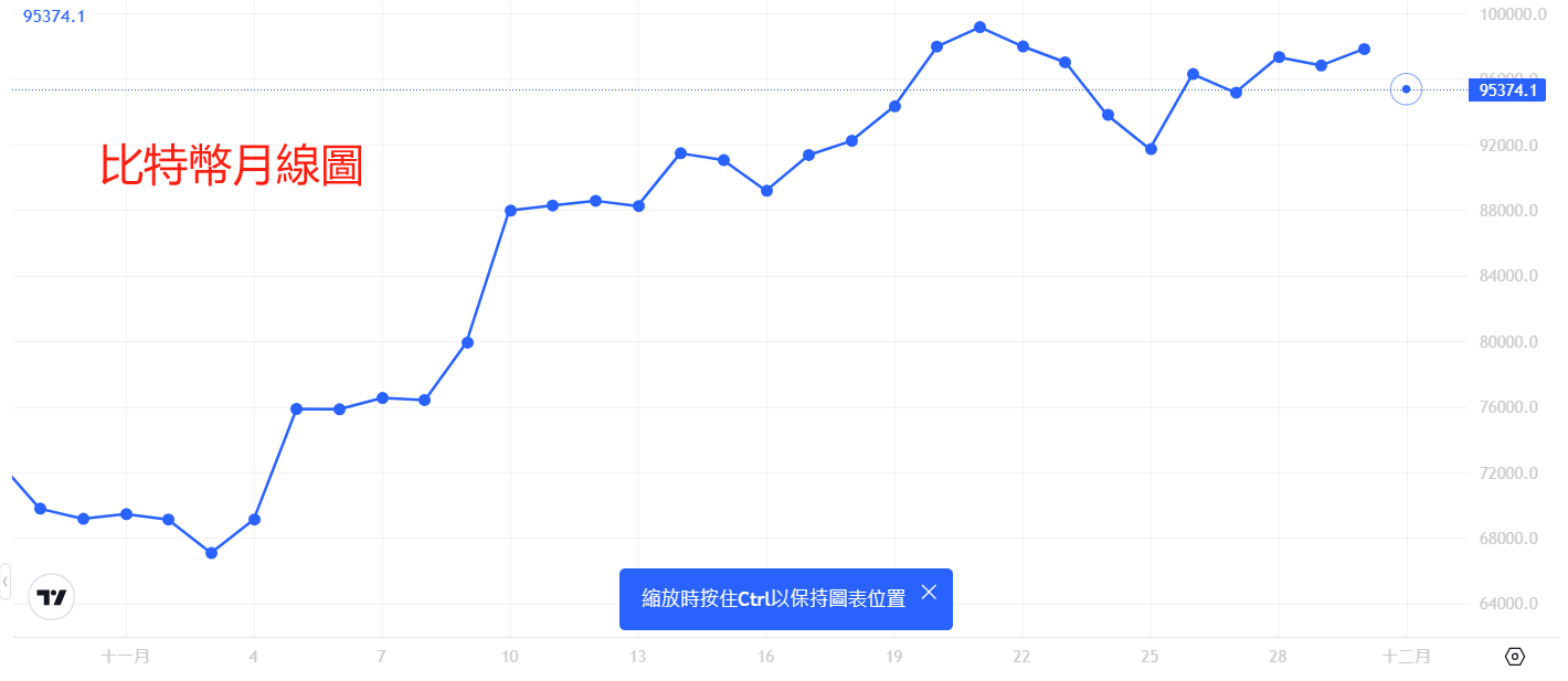 比特幣從月初7萬左右美元起步,經過中旬突破8萬美元的關口,到最終觸及99,630.0美元的歷史新高。這一驚人漲幅背後,反映出了市場參與者的信心正在全面提升。投資人買盤的力量也持續增強,尤其是機構投資人的積極入場,為市場注入了充沛的流動性,同時也帶動了散戶投資熱情的高漲。