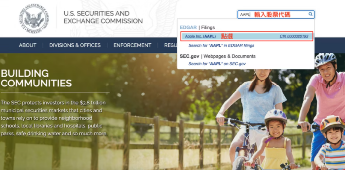 第二步:输入欲查询的公司股票代码,点选后方有CIK 的选项,进入公司页面就可以点击要下载的财务资料了,例如:要看年报的话,直接点选10-K 的选项即可。