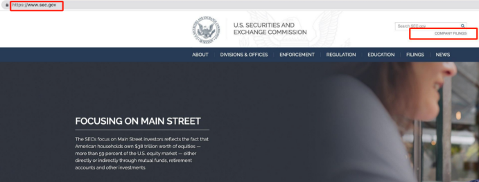 第一步:登陆网站sec.gov,点击右上角的Company Filings