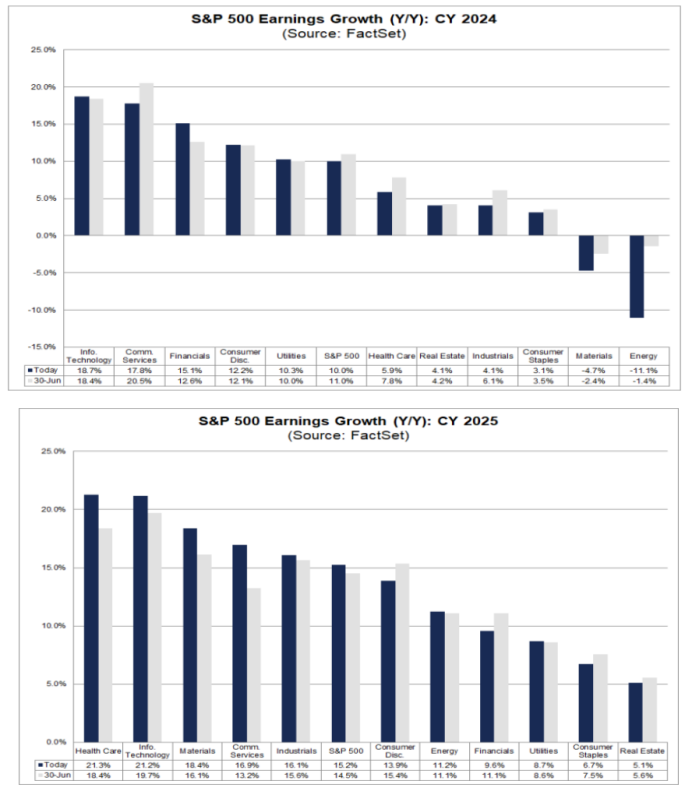 今年第一季度,标普500指数的盈利增长率超过了5%,相比上一季度有所提升。预计第二季度的盈利增长率将接近11%,并有望连续第四个季度实现增长。