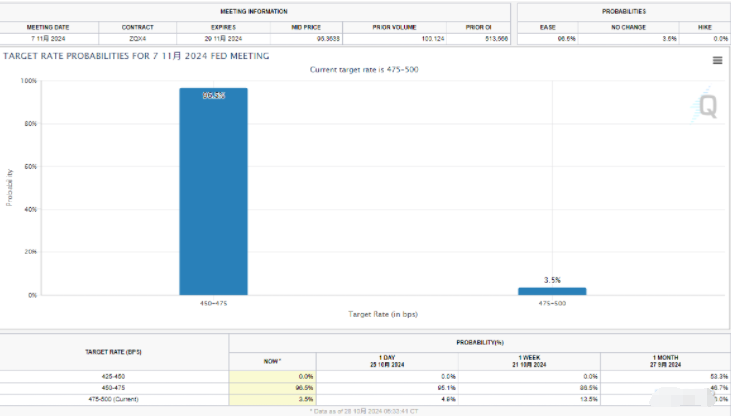 Against the backdrop of this intensive release of economic data, the market expects the probability of the Federal Reserve to cut interest rates at its November meeting as high as 96%, according to the Chicago Mercantile Exchange's FedWatch tool.