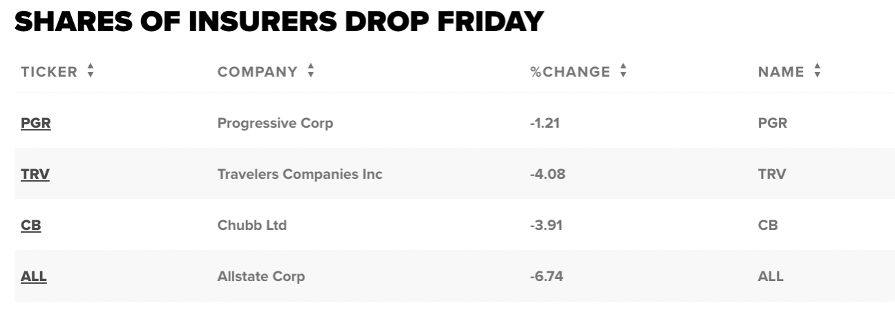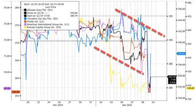 Insurance companies are under financial pressure due to the huge insurance claims they have to bear. The stock prices of some insurance companies have plummeted. For example, Allstate's stock price once fell by more than 7%, Chubb once fell by more than 5.4%, AIG once fell by nearly 3.1%, and Travelers once fell by nearly 4.5%.