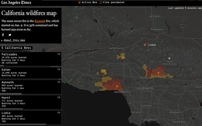 The California Department of Forestry and Fire Protection reported on the morning of the 9th that the total burned area of 5 dangerous wildfires exceeded 117 square kilometers. The most serious "Palisades Fire" and "Eaton Fire" have not been effectively controlled.