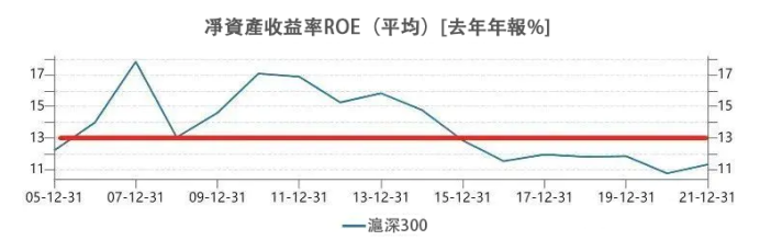 滬深300的估值分析顯示,其距離保守估值僅差1%。這一數據與過去十幾年滬深300的平均ROE(淨資產回報率)13%左右基本一致。