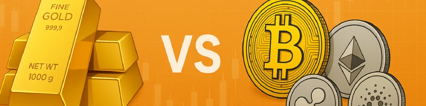 So sánh vàng và tiền điện tử năm 2025